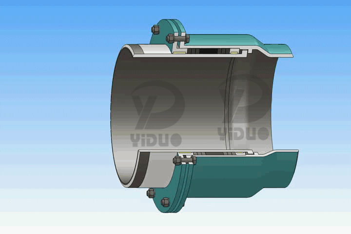 特點:旋轉補償器因軸向位移被限制,盲板力在補償器內部被吸收,因此管網中支架不承受盲板推力。