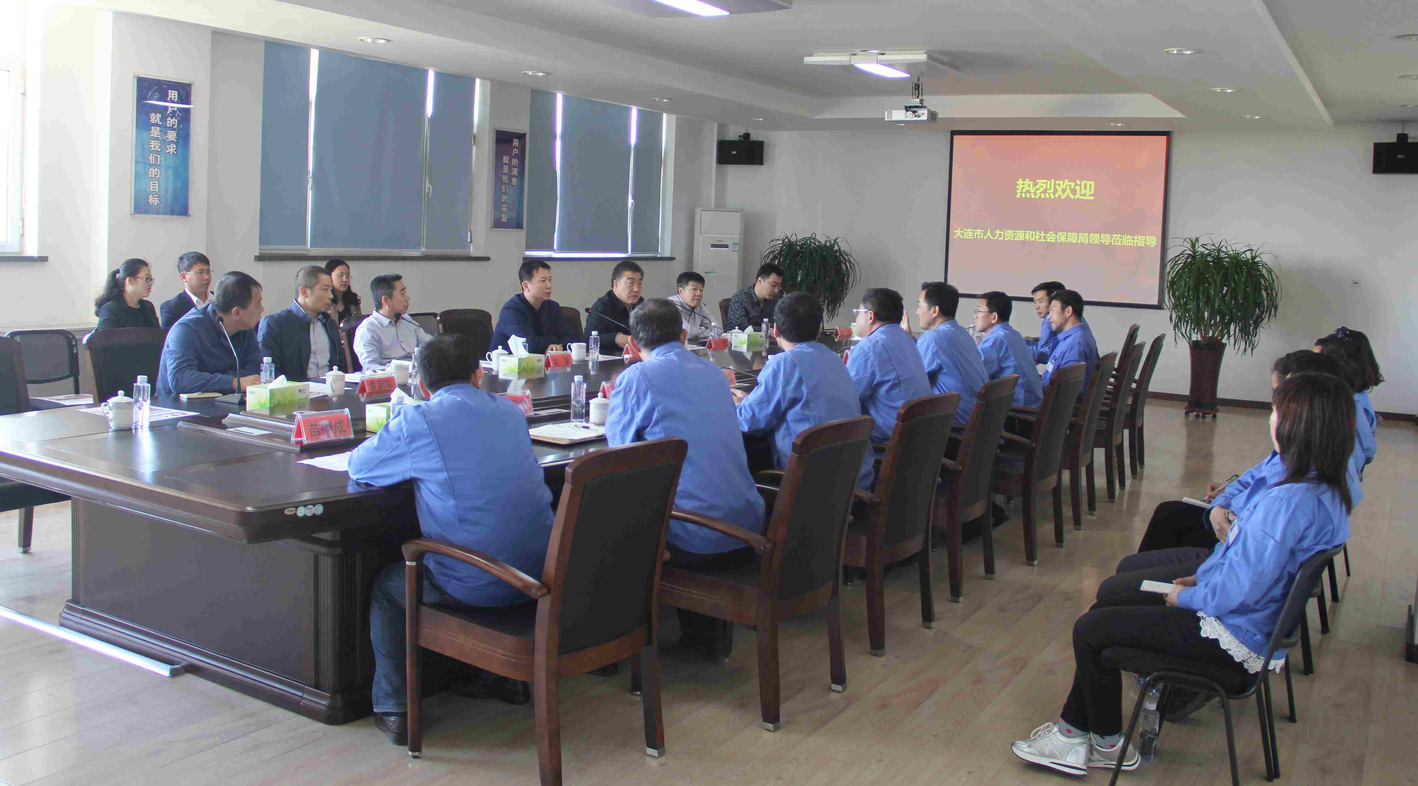 2016年4月28日大連市人力資源和社會保障局孫長久副局長帶隊一行14人到益多走訪調(diào)研,長興島勞人局…