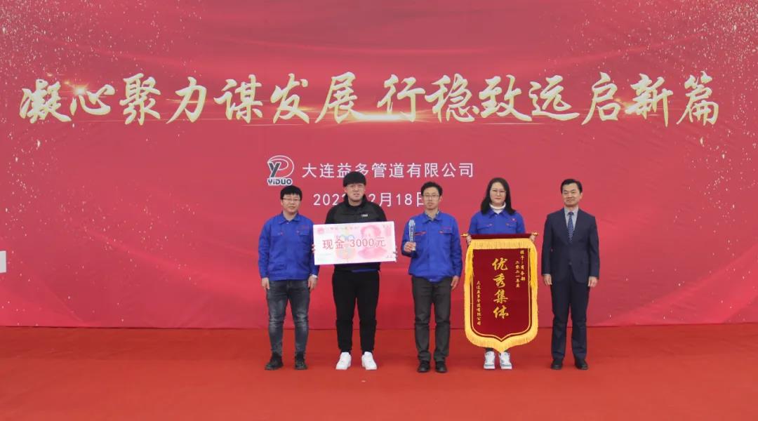 2月18日上午,大連益多管道有限公司召開了2022年年會(huì),本次年會(huì)的主題是“凝心聚力謀發(fā)展,行穩(wěn)致遠(yuǎn)啟新篇”。會(huì)議由劉忠科副總經(jīng)理主持,郭德軍總經(jīng)理出席并講話。會(huì)上表彰了樊作江等20名先進(jìn)個(gè)人、生產(chǎn)部等5個(gè)先進(jìn)集體,葉鑫等29名同志分別獲得五年、十年、十五年、二十年特殊貢獻(xiàn)獎(jiǎng)。樊作江、楊忠營、商務(wù)部分別代表受到表彰的先進(jìn)個(gè)人和先進(jìn)集體發(fā)言。公司全體員工參加了會(huì)議。